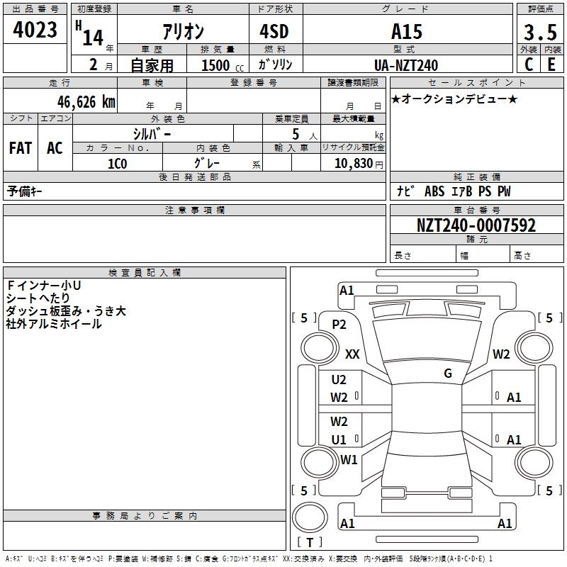 TOYOTA ALLION - лот 4023