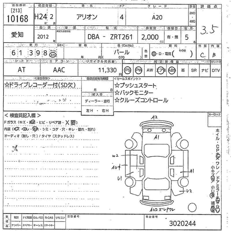 TOYOTA ALLION - лот 10168