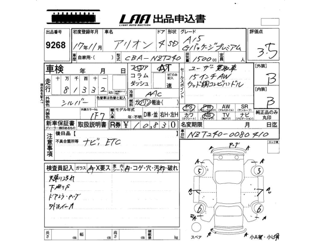 TOYOTA ALLION - лот 9268