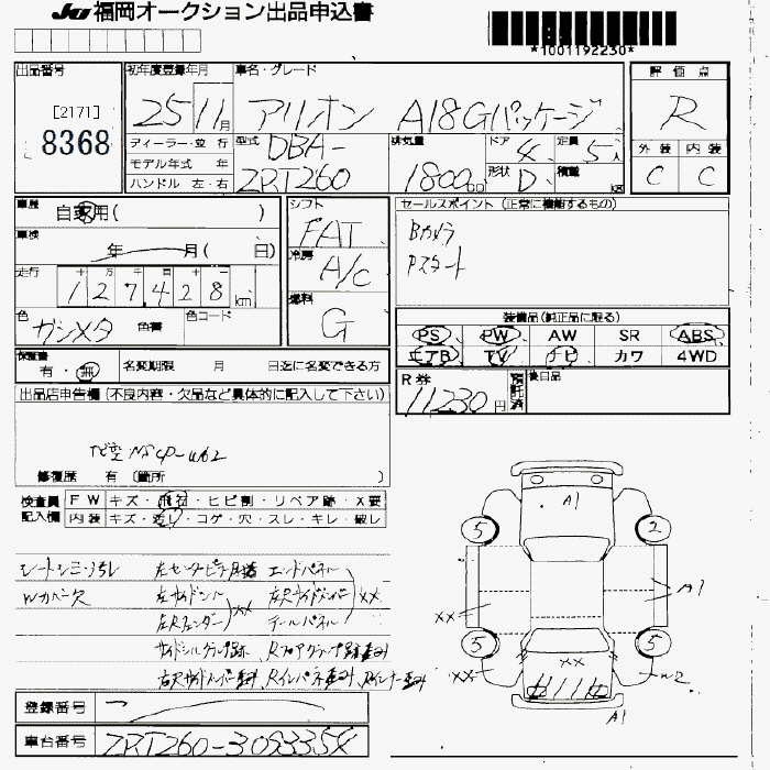TOYOTA ALLION - лот 8368