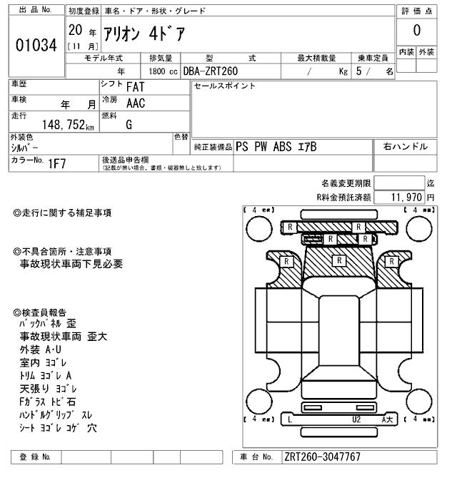 TOYOTA ALLION - лот 1034