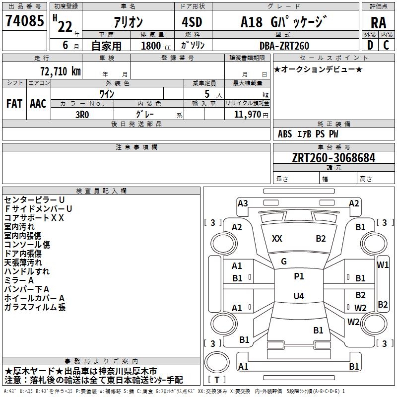 TOYOTA ALLION - лот 74085