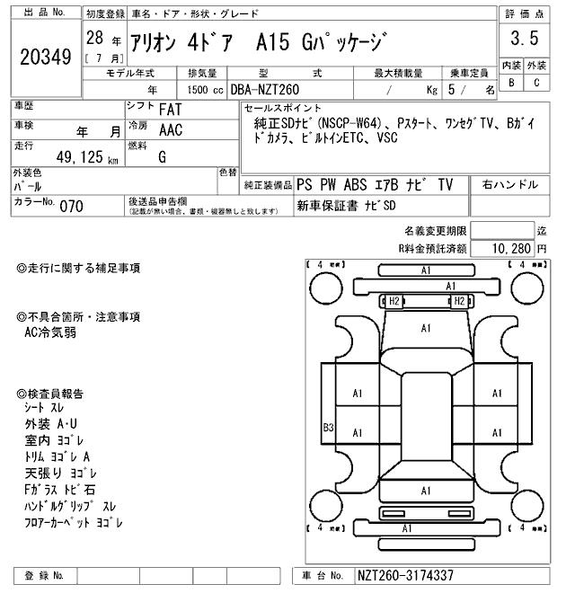 TOYOTA ALLION - лот 20349