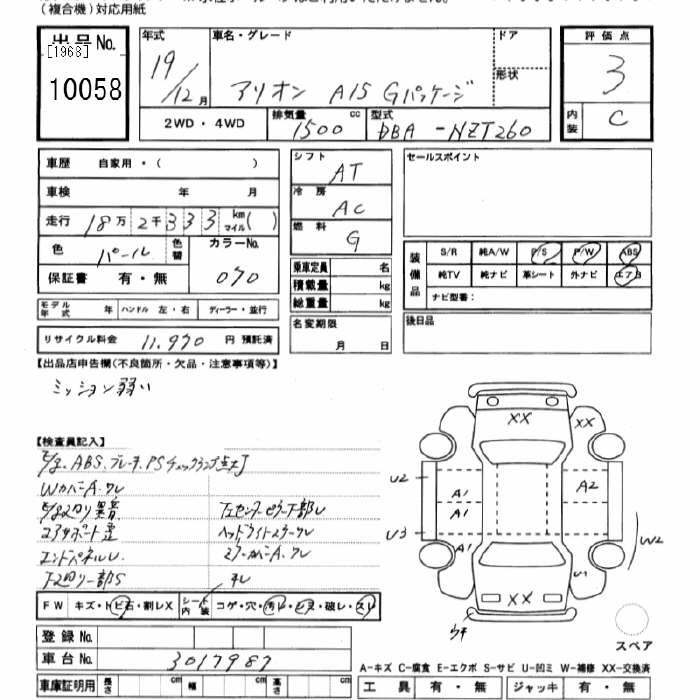 TOYOTA ALLION - лот 10058