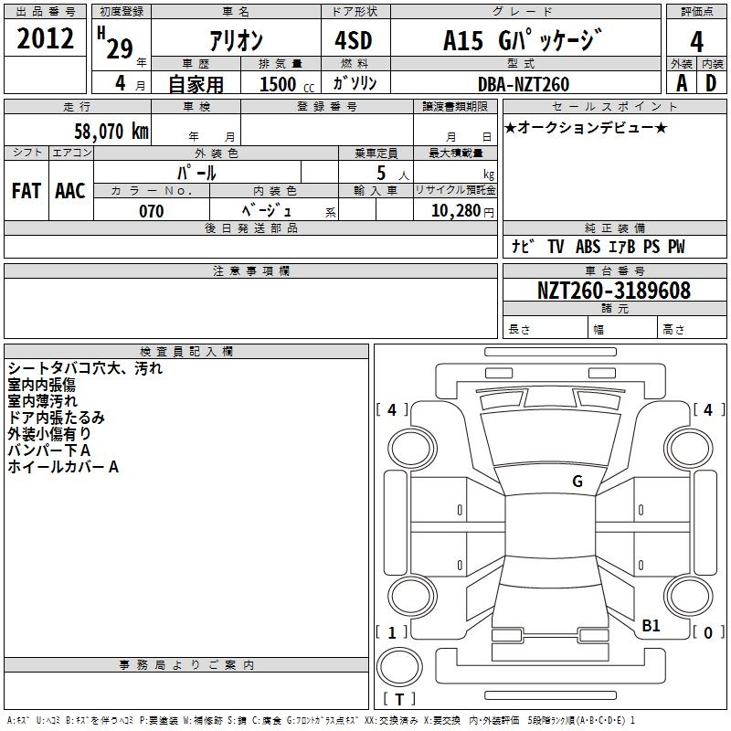 TOYOTA ALLION A15 G package - лот 2012