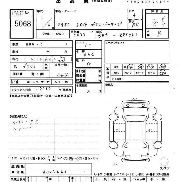 TOYOTA ALLION - лот 5068