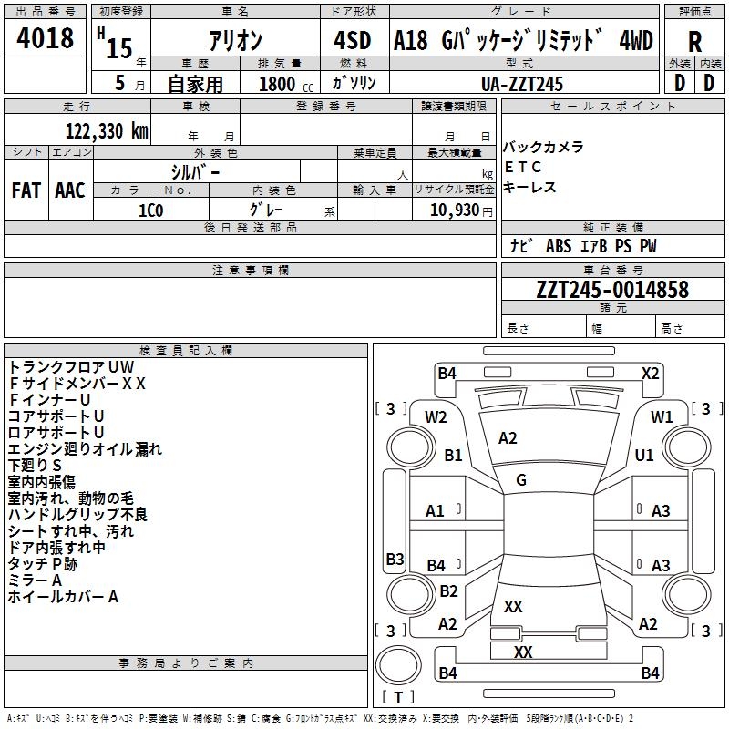 TOYOTA ALLION - лот 4018