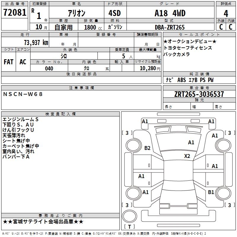 TOYOTA ALLION - лот 72081