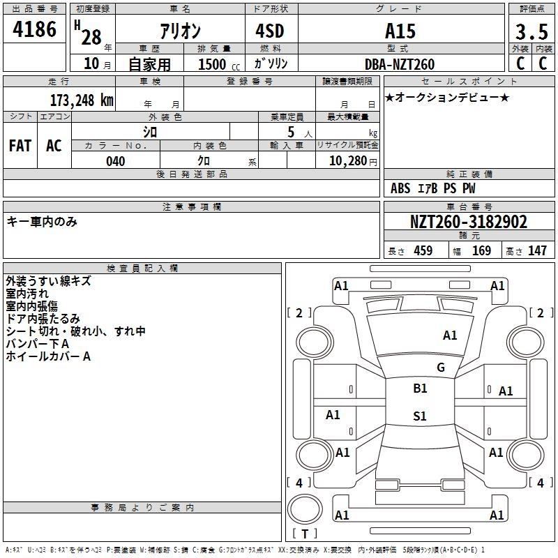 TOYOTA ALLION - лот 4186