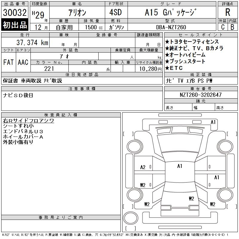 TOYOTA ALLION - лот 30032