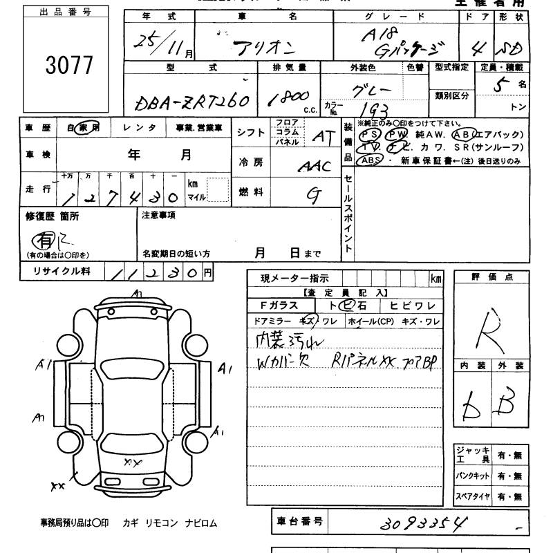 TOYOTA ALLION - лот 3077