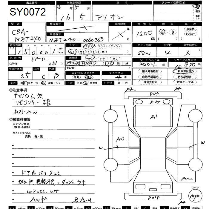 TOYOTA ALLION - лот 72