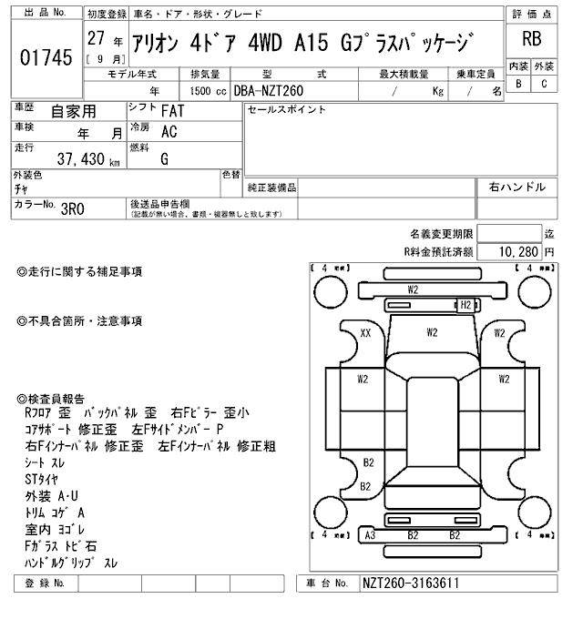 TOYOTA ALLION - лот 1745