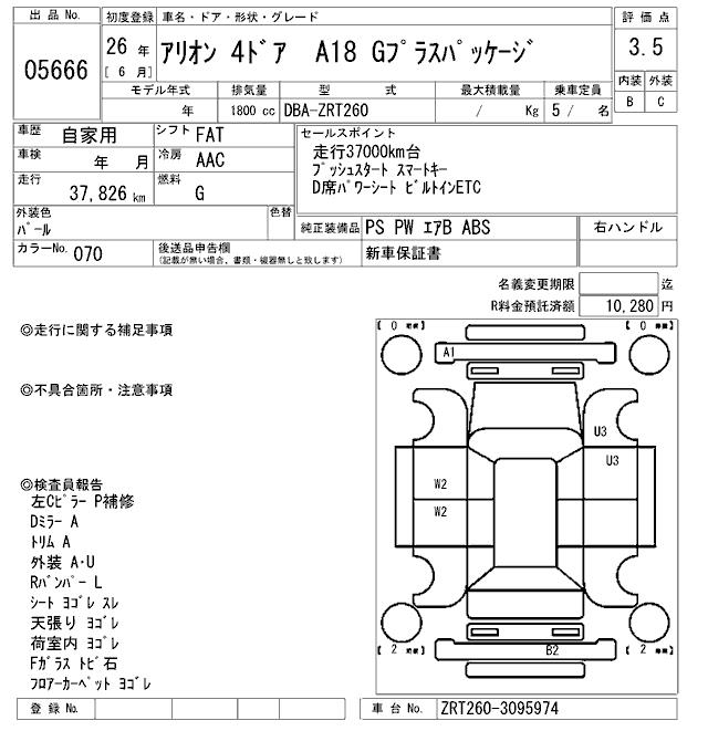 TOYOTA ALLION - лот 5666