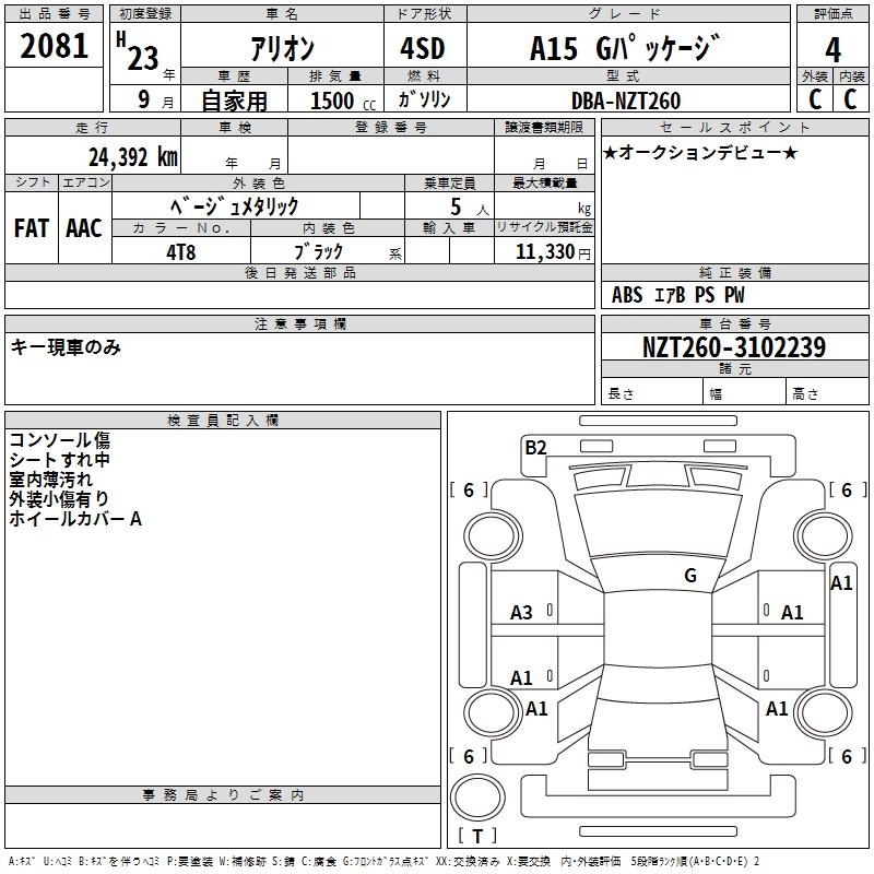 TOYOTA ALLION - лот 2081