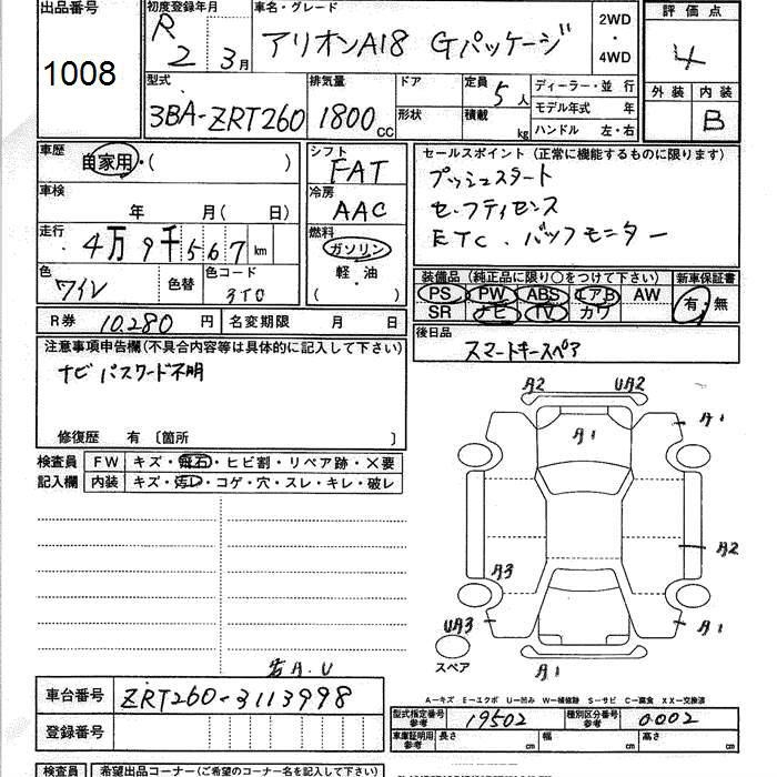 TOYOTA ALLION - лот 1008