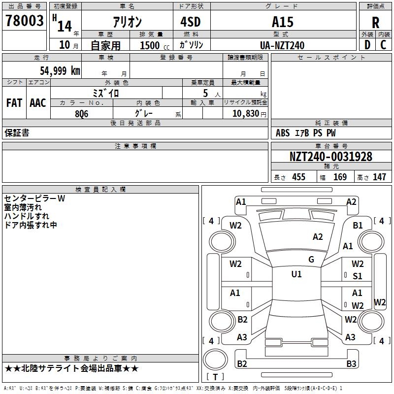 TOYOTA ALLION - лот 78003
