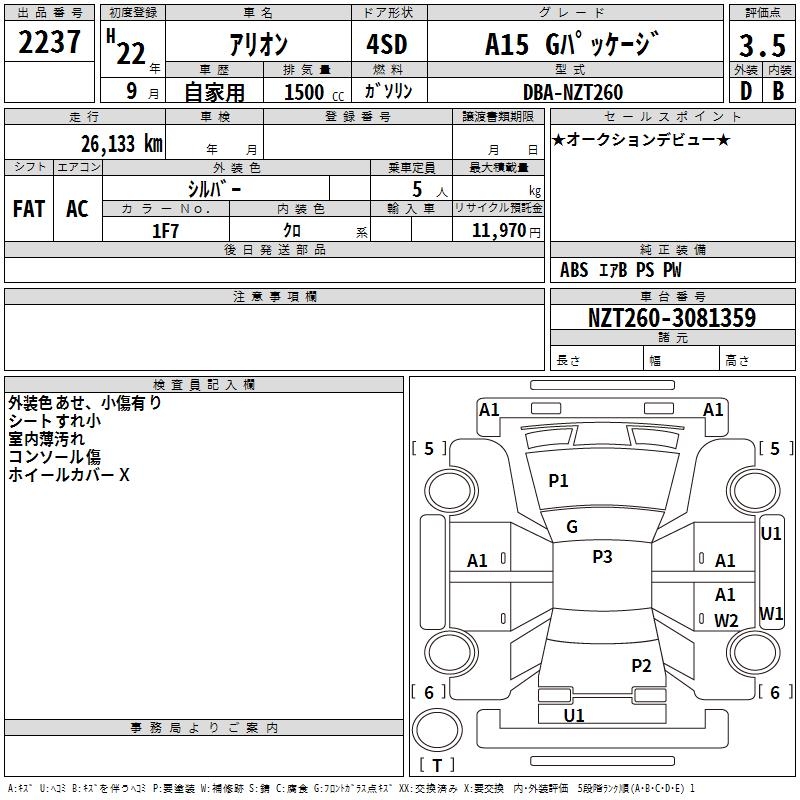 TOYOTA ALLION - лот 2237