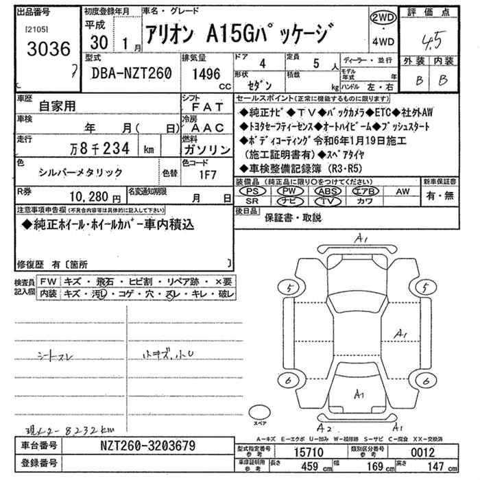 TOYOTA ALLION - лот 3036
