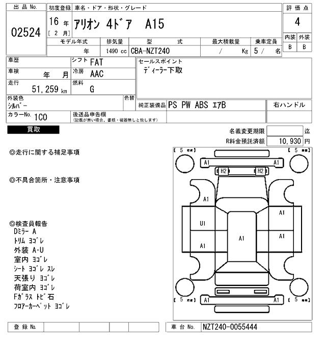 TOYOTA ALLION - лот 2524