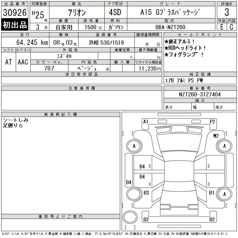 TOYOTA ALLION - лот 30926