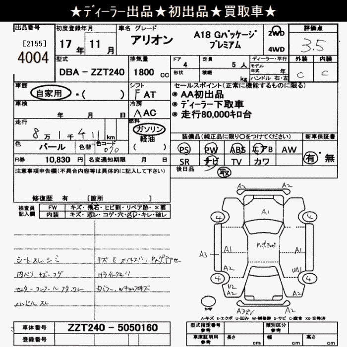 TOYOTA ALLION - лот 4004