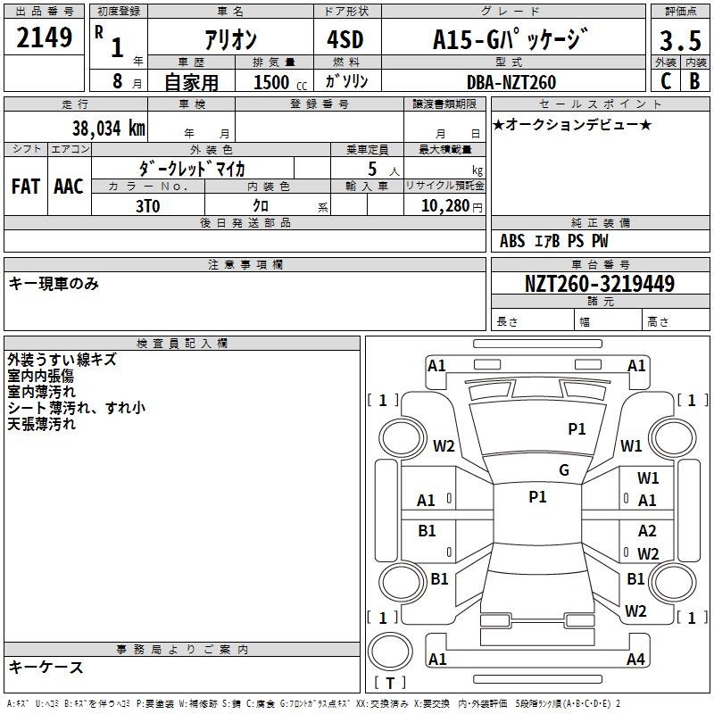 TOYOTA ALLION - лот 2149