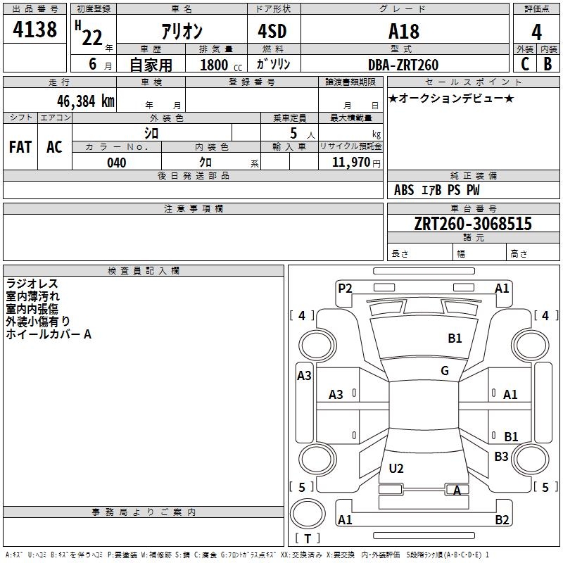 TOYOTA ALLION - лот 4138