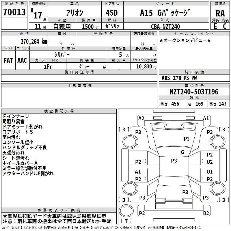 TOYOTA ALLION - лот 70013