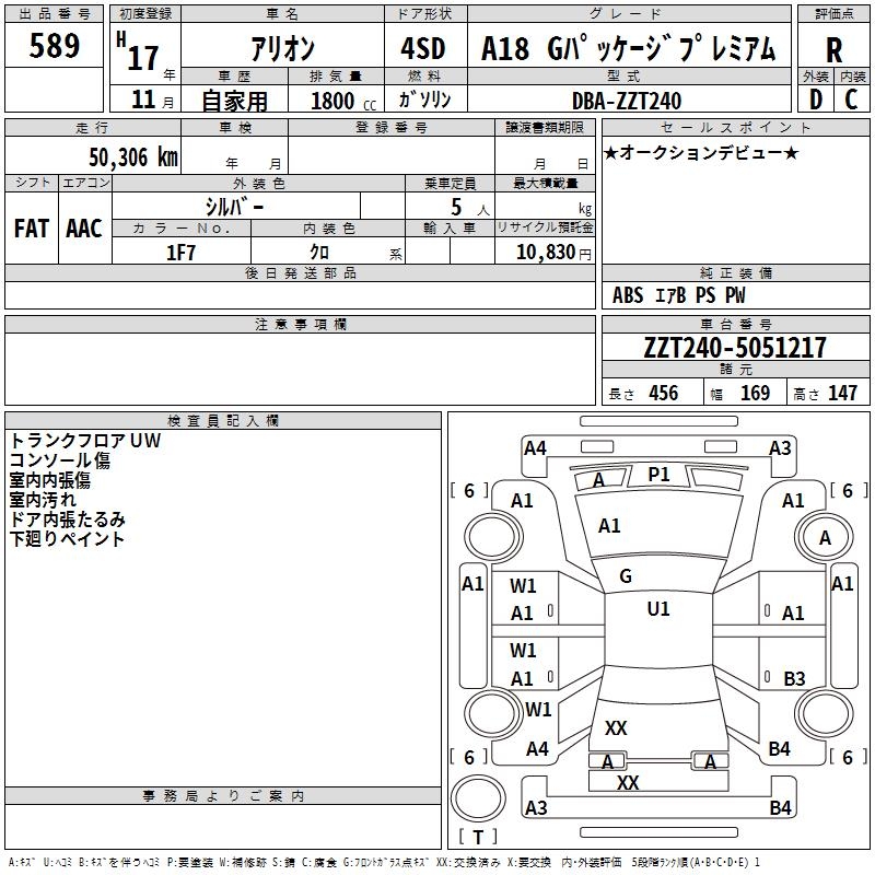 TOYOTA ALLION - лот 589