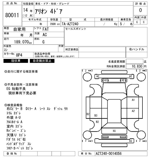 TOYOTA ALLION - лот 80011