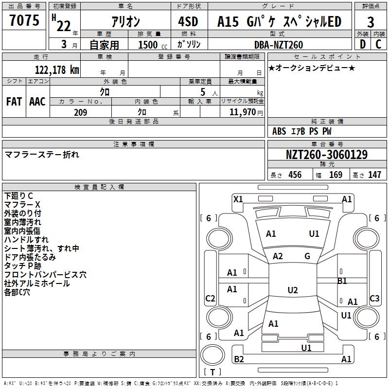 TOYOTA ALLION - лот 7075