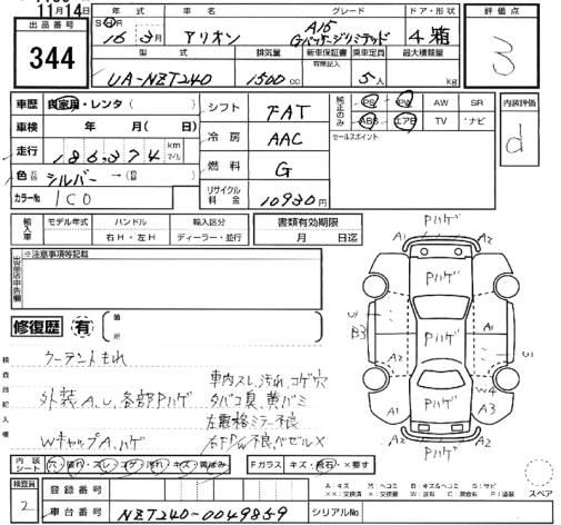 TOYOTA ALLION - лот 344