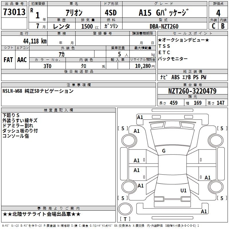 TOYOTA ALLION - лот 73013