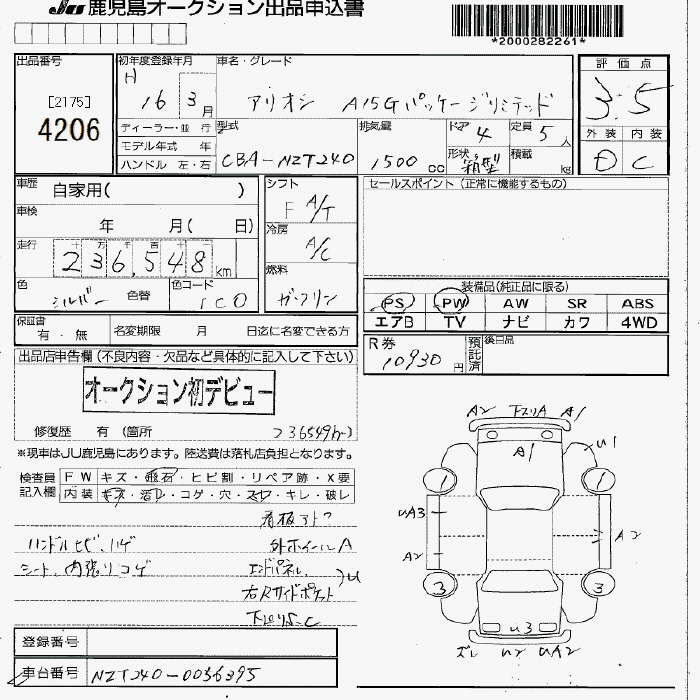 TOYOTA ALLION - лот 4206