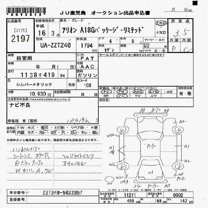 TOYOTA ALLION - лот 2197