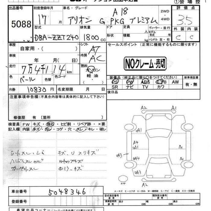 TOYOTA ALLION - лот 5088