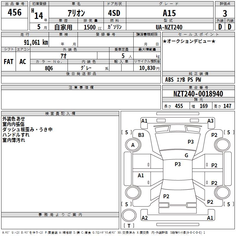 TOYOTA ALLION - лот 456