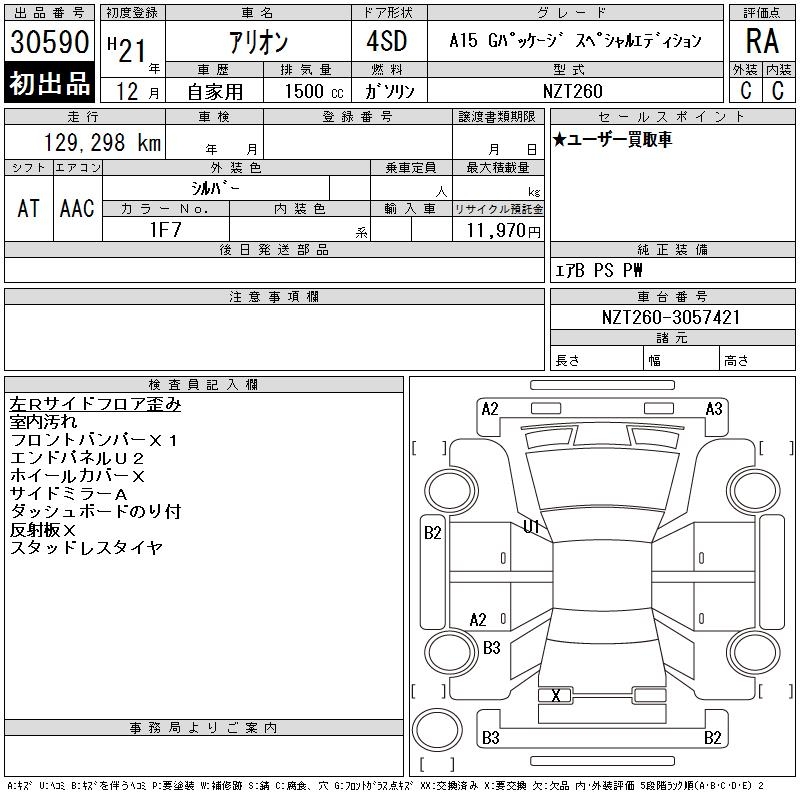 TOYOTA ALLION - лот 30590