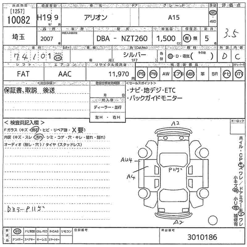 TOYOTA ALLION - лот 10082