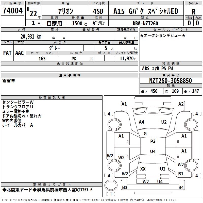 TOYOTA ALLION - лот 74004