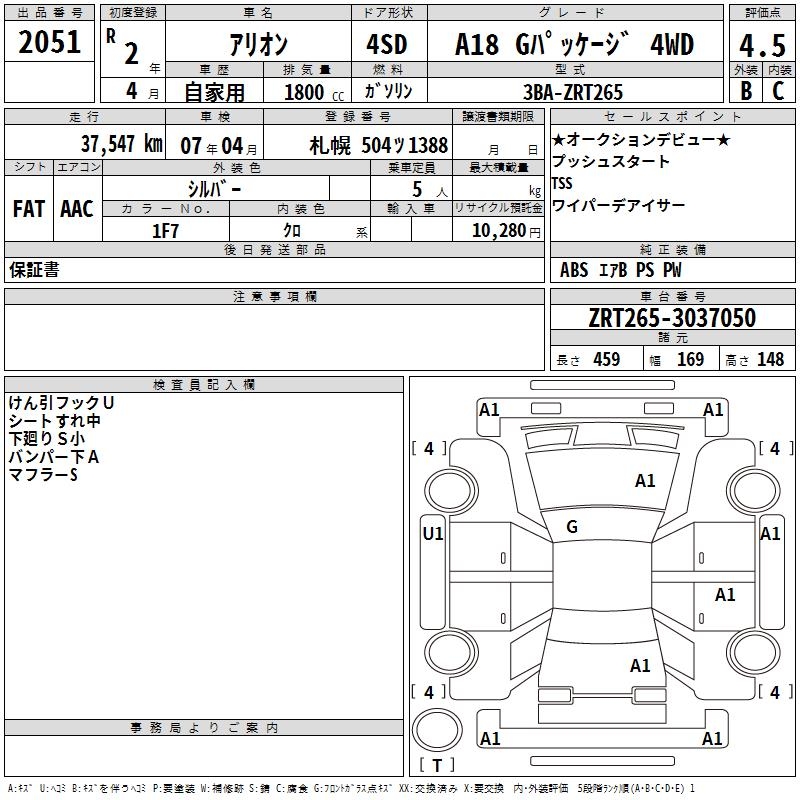 TOYOTA ALLION - лот 2051