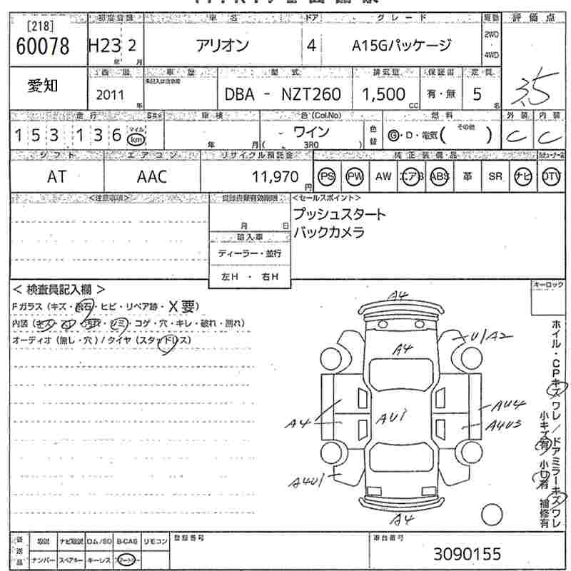 TOYOTA ALLION - лот 60078