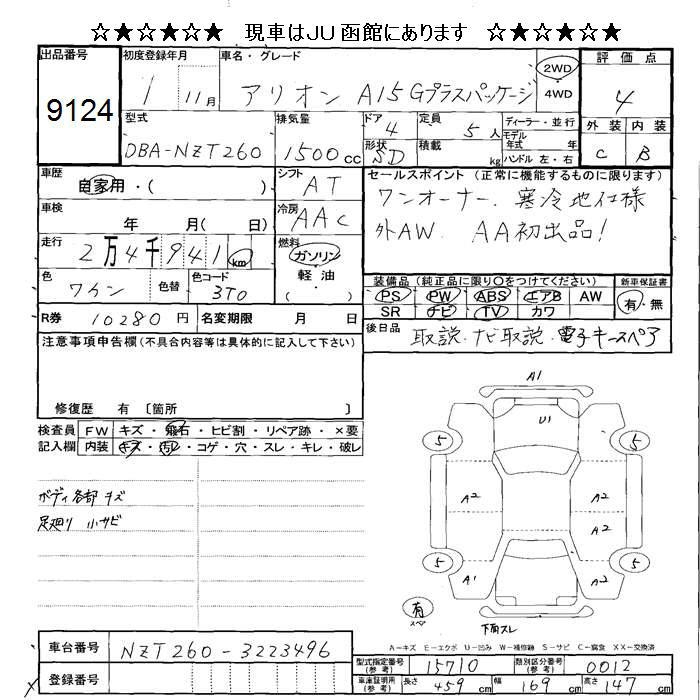 TOYOTA ALLION - лот 9124