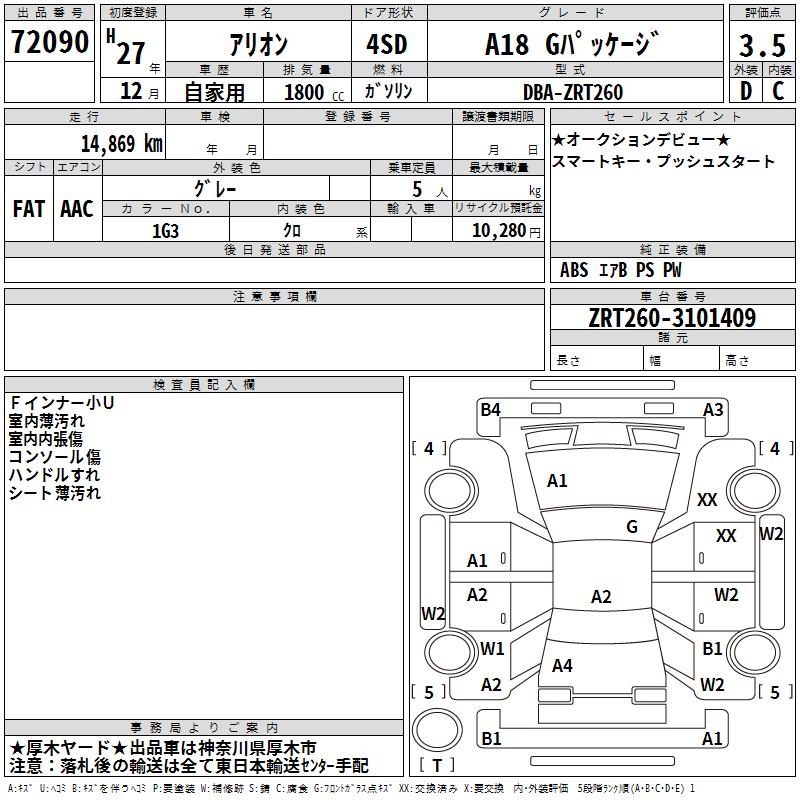 TOYOTA ALLION - лот 72090