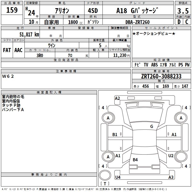 TOYOTA ALLION - лот 159