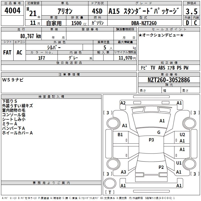 TOYOTA ALLION - лот 4004