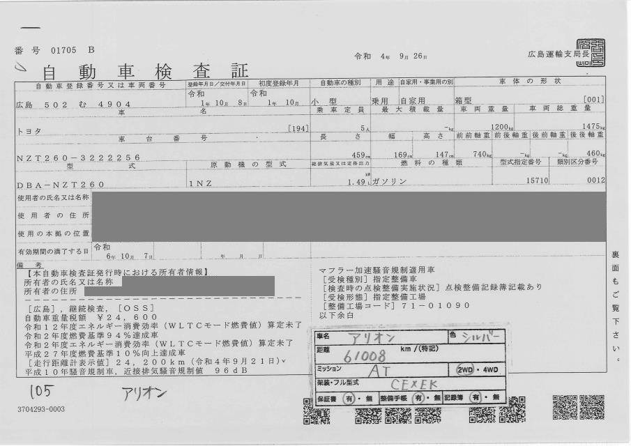 TOYOTA ALLION - лот 105