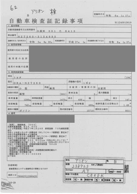TOYOTA ALLION - лот 62