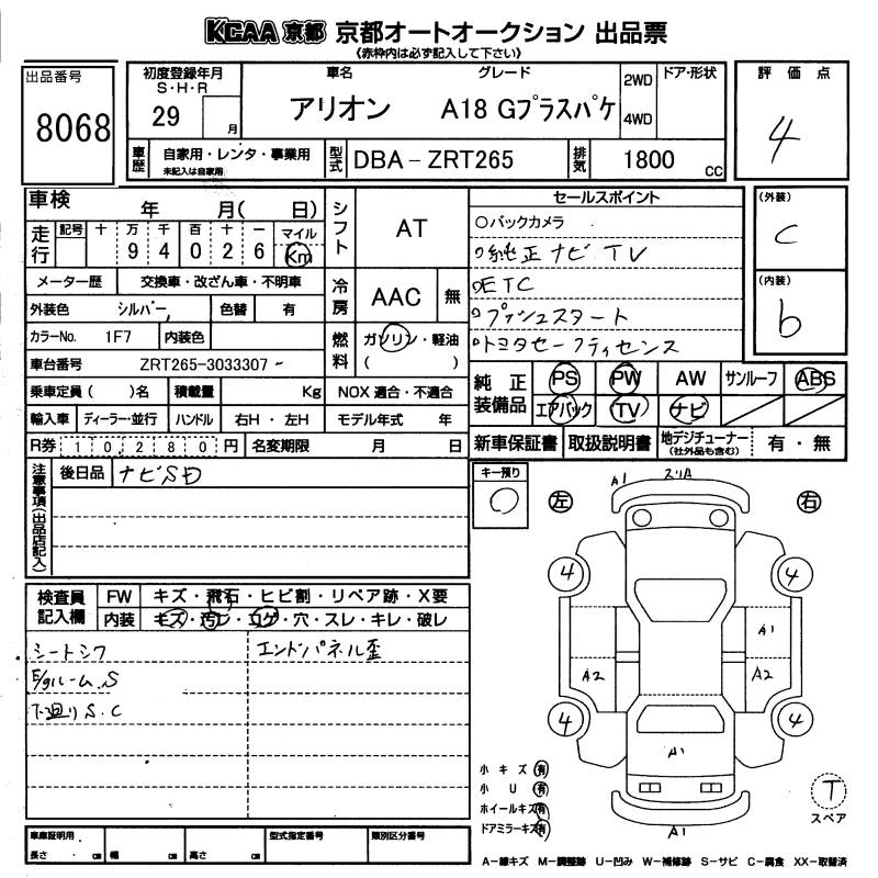 TOYOTA ALLION - лот 8068